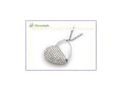 Silver USB 1.1 / 2.0 Crystal Heart USB Flash Drive Jewelry, Bulk USB Flash Drives